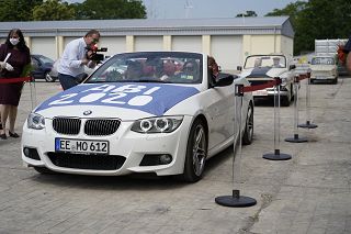 Mit einem Klassenfoto der festlich gekleideten Teilnehmerinnen und Teilnehmer neben ihrem Fahrzeug wurde das ABI DRIVE IN 2020 beendet und ebenso geordnet wie bei der Einfahrt verließen die Gruppen bei passenden Klängen den Festplatz. Nicht ohne ihr Verkehrshütchen einzupacken und weitere Erinnerungsgeschenke des Landrats, der uesa-Gmbh und des Jahrgangs ins Auto gereicht zu bekommen.